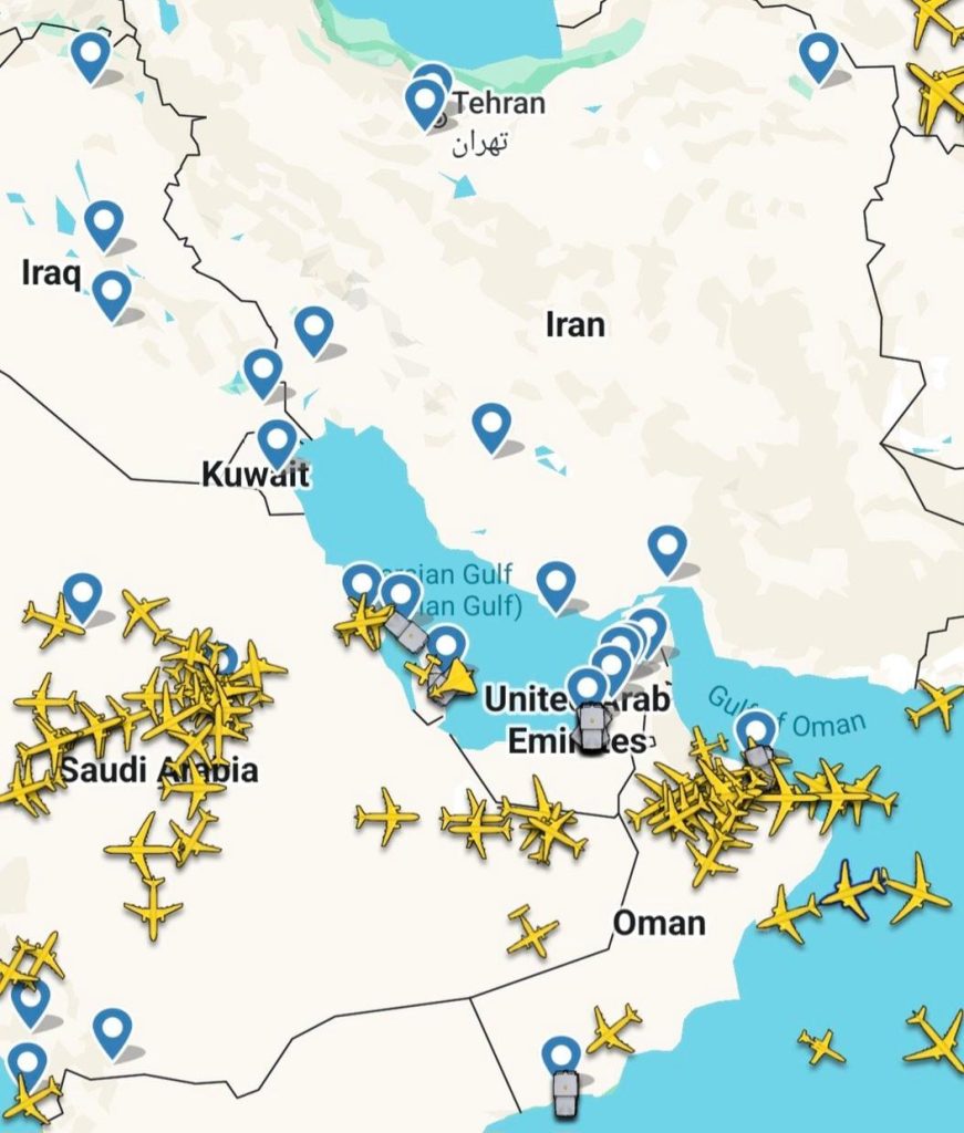 Jedan od najkritičnijih koridora na svetu je poremećen u svom protoku vazdušnog saobraćaja, čije je zatvaranje razbilo kontinuirani protok letova i po domino efektu prouzrokovalo zatvaranje vazdušnog prostora i aerodroma- od Emirata, preko Katara, Kuvajta, Bahreina, Iraka i Jordana, i primoralo kompanije u tranzitu da traže druga rešenja preleta i zaobilaženja između Evrope i Azije odnosno Dalekog Istoka i Pacifika.